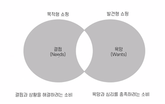 반면에 발견형 쇼핑은 욕망(wants)이 이끄는 쇼핑으로,