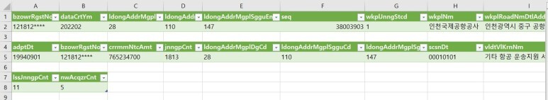기업의 원하는 정보를 엑셀에 표 형식으로 표현할 수 있습니다.