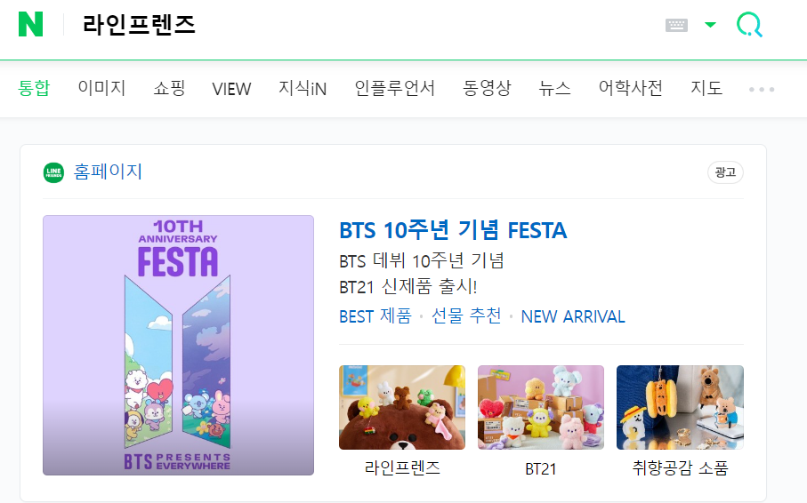 이용자가 브랜드 키워드 검색 시, 통합검색 결과