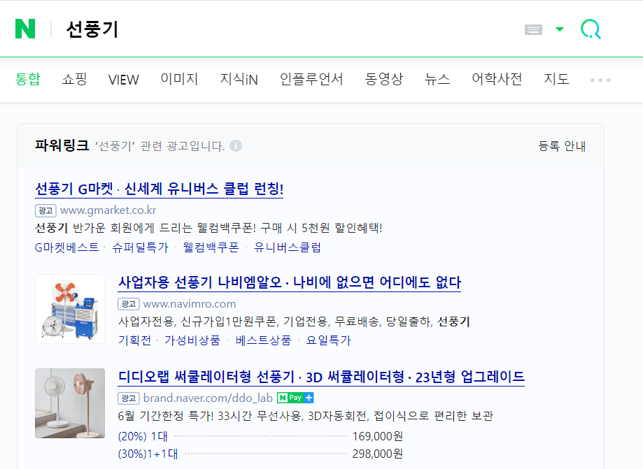 광고 단가가 비교적 저렴하다. 쇼핑광고의 10분의 1정도