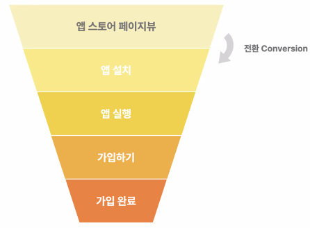 앱스토어 ➡️ 앱설치 ➡️ 앱오픈 ➡️ 액션 ➡️ 액션완료