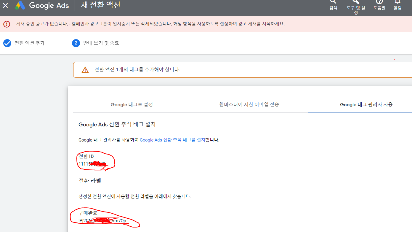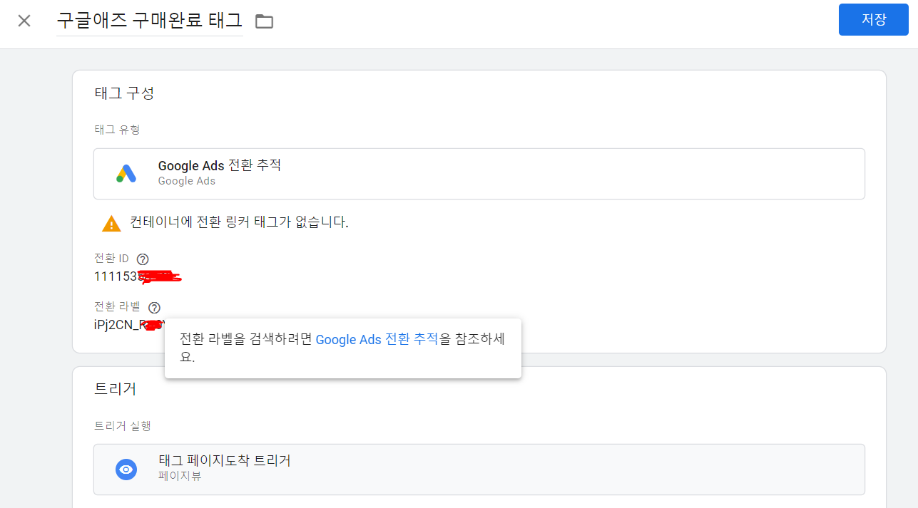 ◾구글 태그 관리자 사용 : 전환ID와 전환 라벨만 알면 된다.