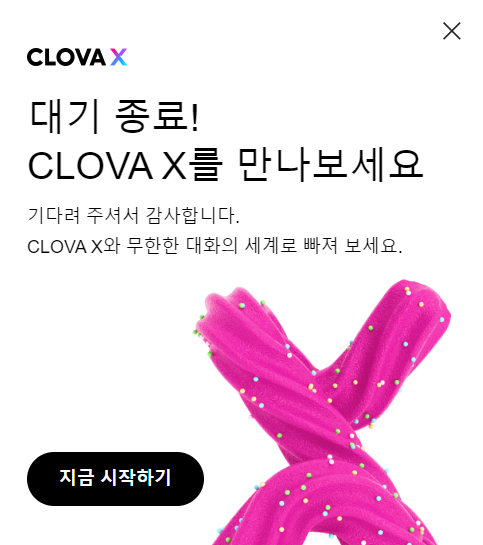 2. 일정 시간이 지나 시작하기를 누르면 [대기 종료!] 표시가 뜨며, 클로바X를 사용하실 수 있습니다.