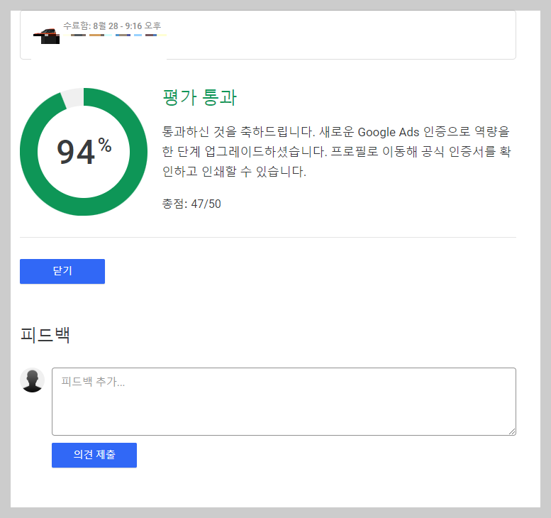📌자격 인증서는 3번 순서에서 구글 검색 인증을 다시 눌러서 들어가면 확인할 수 있습니다.